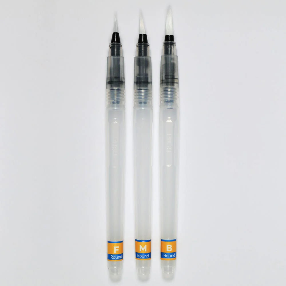 Create effortlessly with our water brushes. This set comes with three different sized brushes that are perfect for watercolours, inks and other water soluble paints. Fill them up with water and gently squeeze the barrel to control the flow - they make blending and delicate brush work easier than ever.
