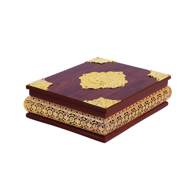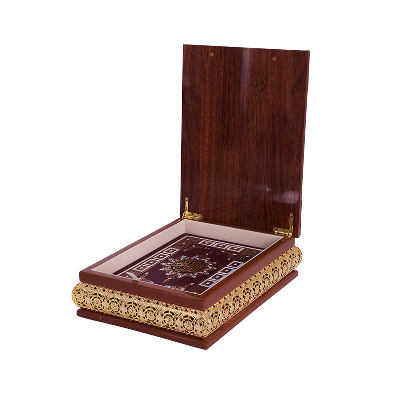 علبة مصحف فاخرة مصنوعة من الجلد البني الأصلي بتشطيبات ذهبية عريقة. تتميز بأبعاد 17×24 سم المثالية لحفظ المصحف الشريف بأناقة وحماية دائمة. الجلد عالي الجودة يضمن متانة استثنائية وملمس ناعم فاخر، بينما تضيف التفاصيل الذهبية لمسة من الرقي والجمال. مناسبة للاستخدام الشخصي أو كهدية قيمة للمناسبات الدينية. تجمع بين الأناقة التقليدية والحماية العملية للمصحف الكريم