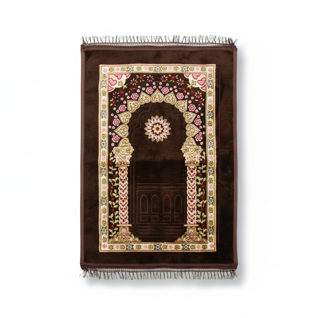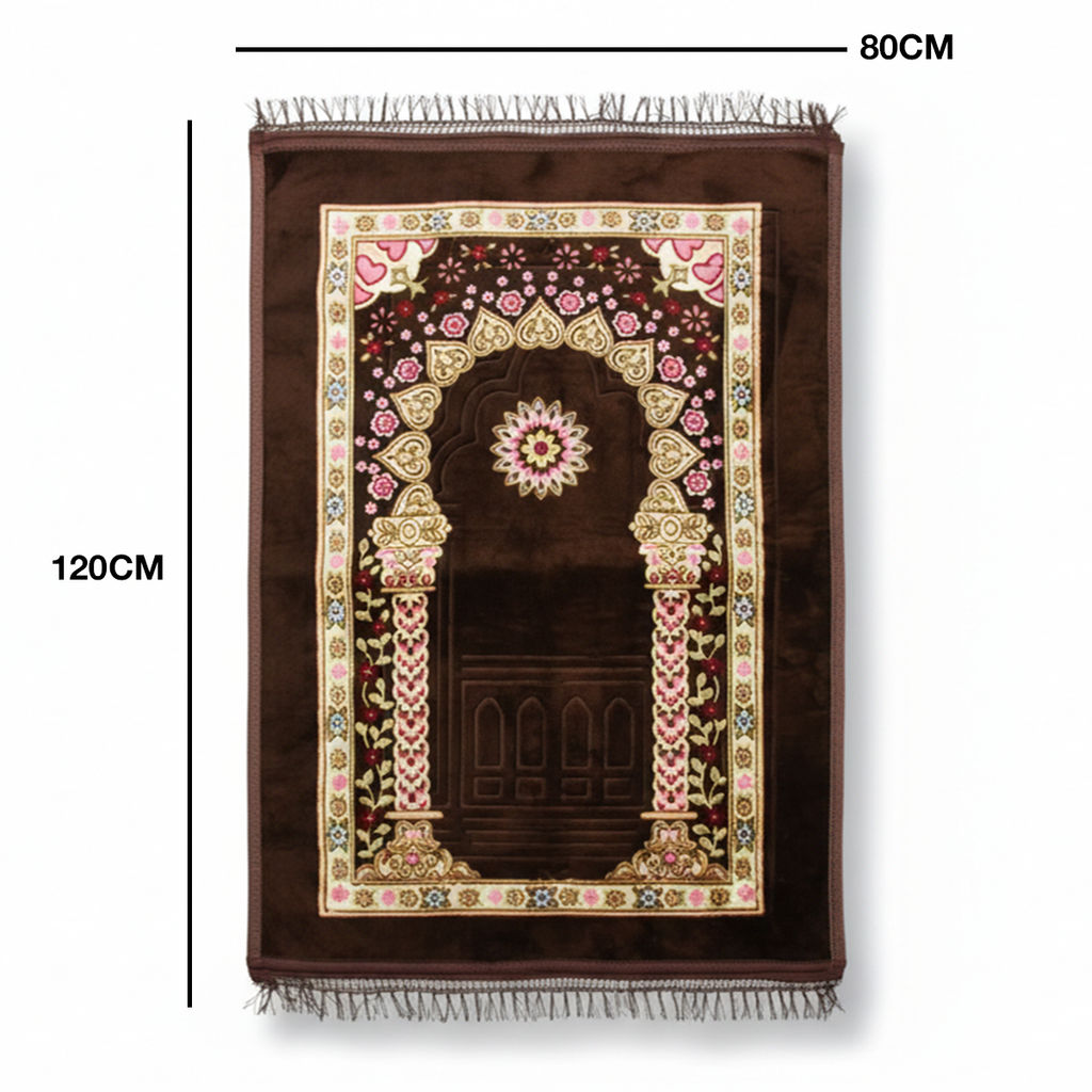 سجادة صلاة عملية وأنيقة بأبعاد 80×120 سم، مصممة لتوفير الراحة والدعم أثناء العبادة. تتميز برسومات بارزة تضيف لمسة جمالية متميزة، مع توفر خيارات متعددة من التصاميم. المادة المستخدمة توفر سطحاً آمناً وثابتاً، مما يجعلها مناسبة للاستخدام اليومي في المنزل أو المسجد. خفيفة الوزن وسهلة الحمل والتنظيف، وهي اختيار موثوق للعائلات التي تبحث عن جودة واستقرار