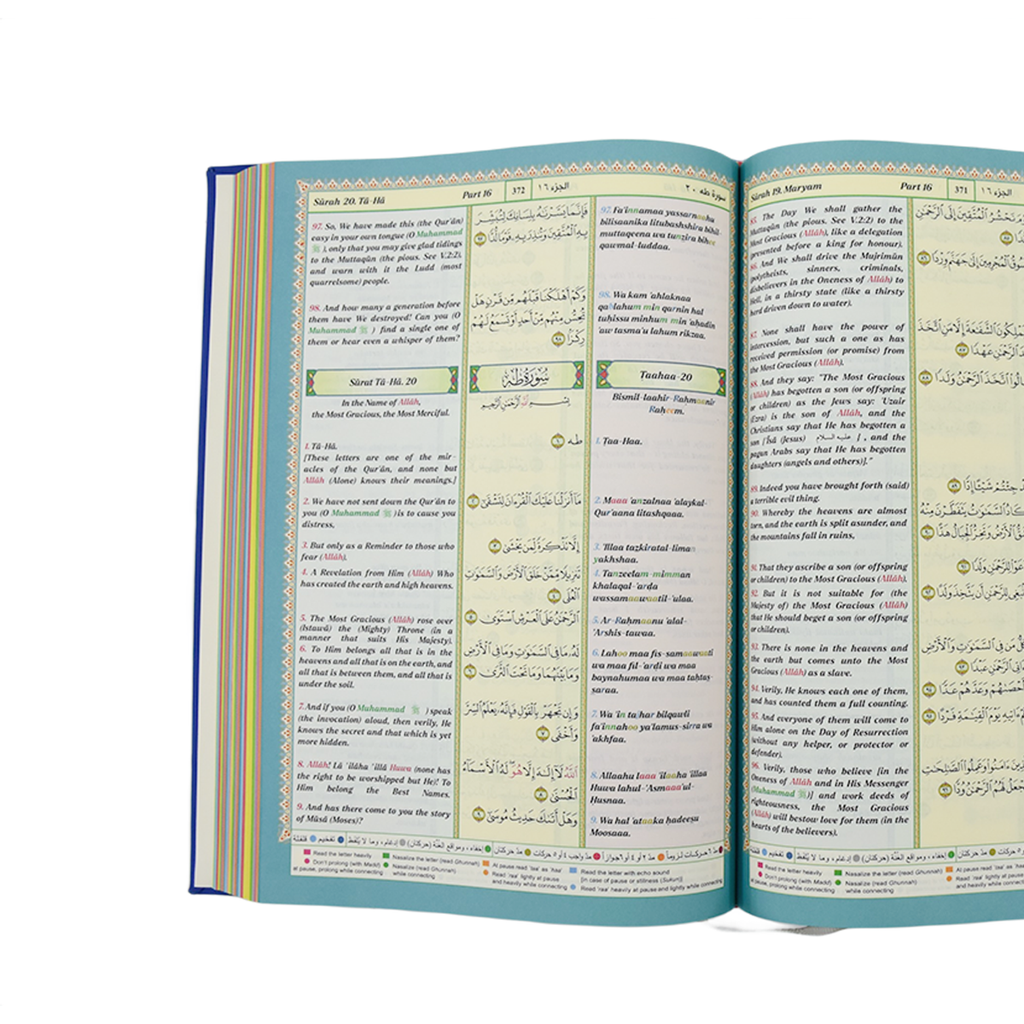 مصحف 17×24 عربي انجليزي لاتيني الوان الطيف بيو ازرق غامق