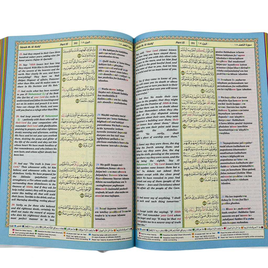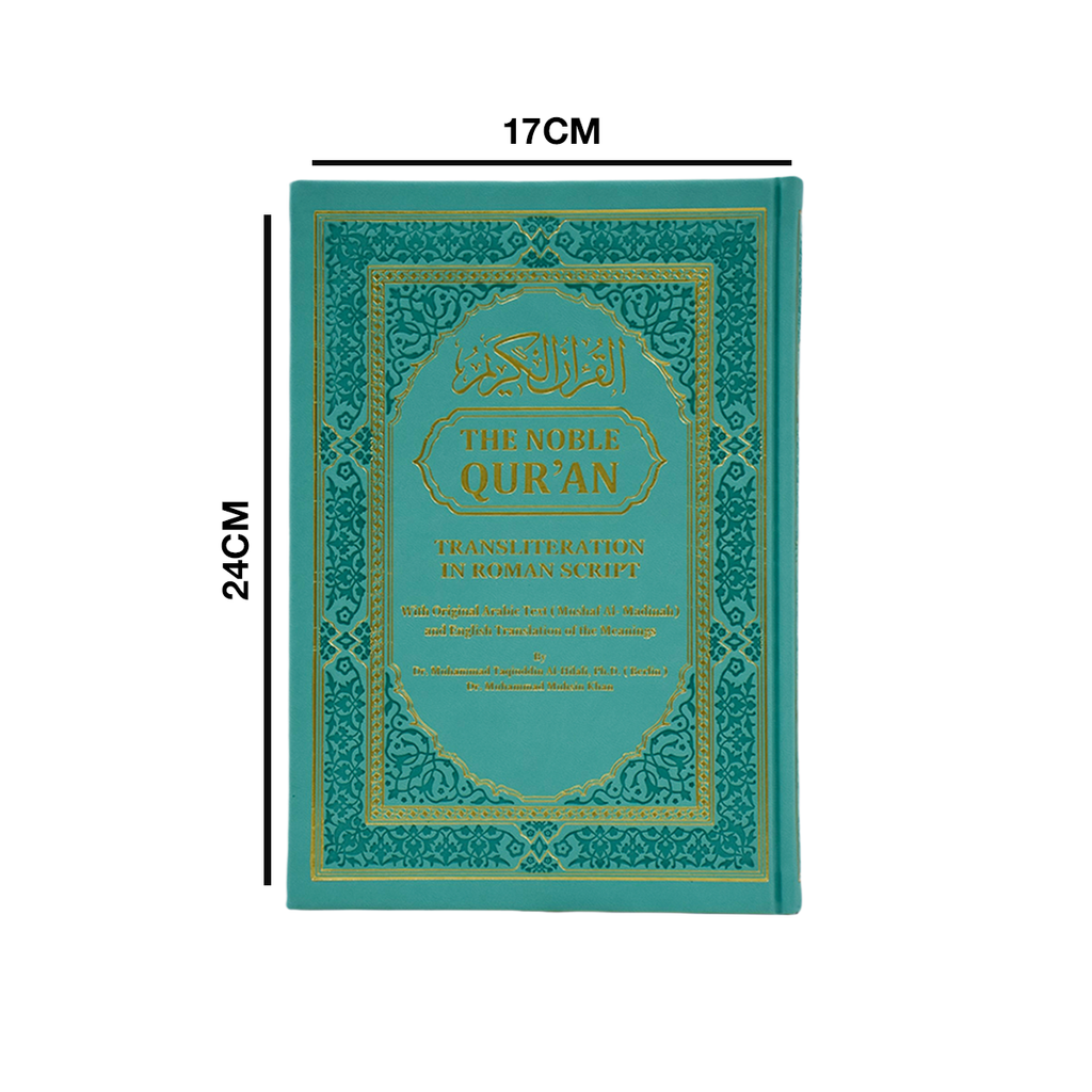 مصحف 17×24 عربي انجليزي لاتيني الوان الطيف بيو اخضر فيروزي