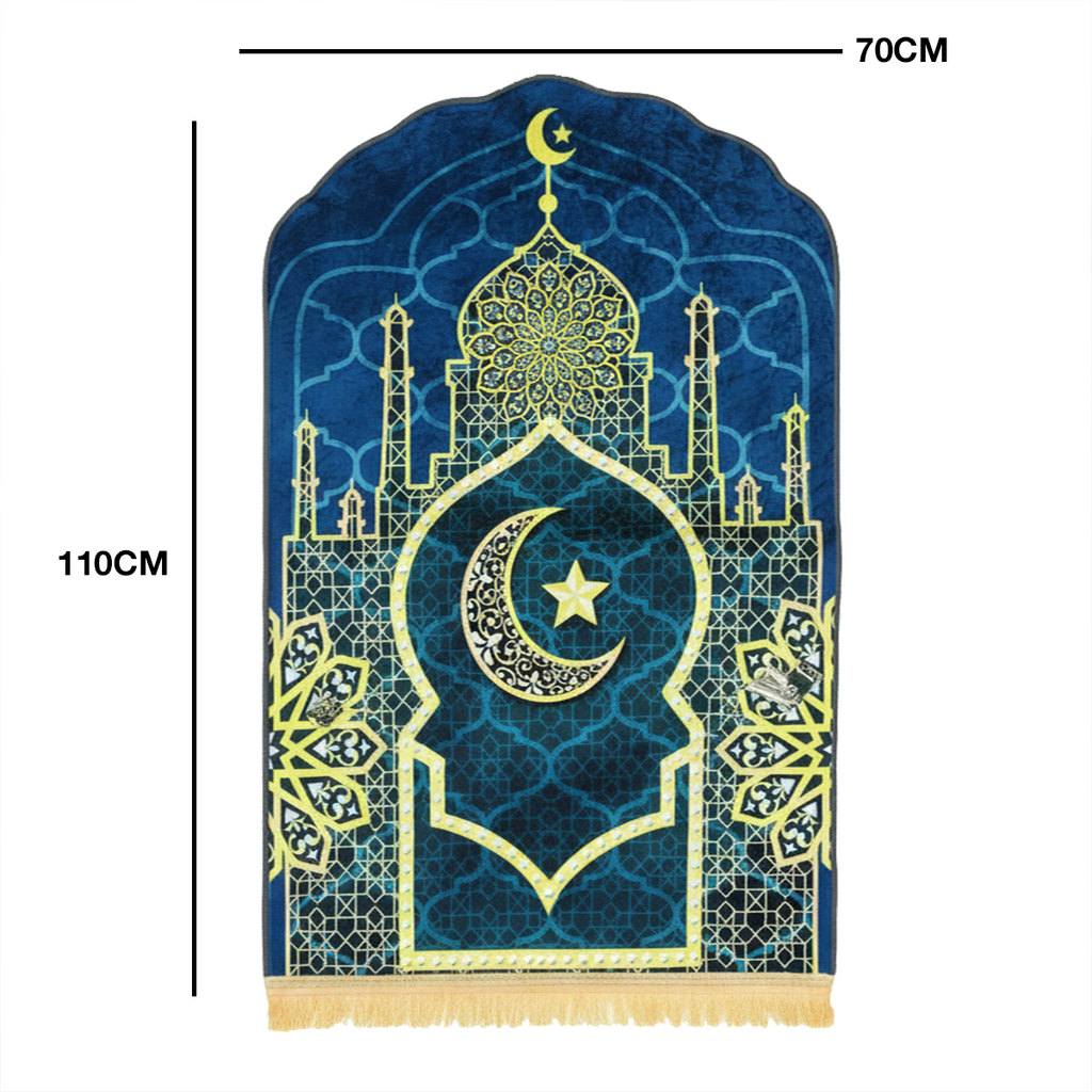 سجادة صلاة عملية وأنيقة بتصميم مضلع مميز باللون التركواز الهادئ. تتميز بأبعاد مثالية 70×110 سم توفر مساحة كافية للصلاة براحة تامة. مصنوعة من مواد عالية الجودة توفر عزلاً فعالاً عن الأرض وسطح ناعم يحافظ على الراحة أثناء الصلاة. التصميم المضلع يضيف لمسة جمالية عصرية مع الحفاظ على الوظيفة الأساسية. خيار موثوق للاستخدام اليومي في المنزل أو المسجد