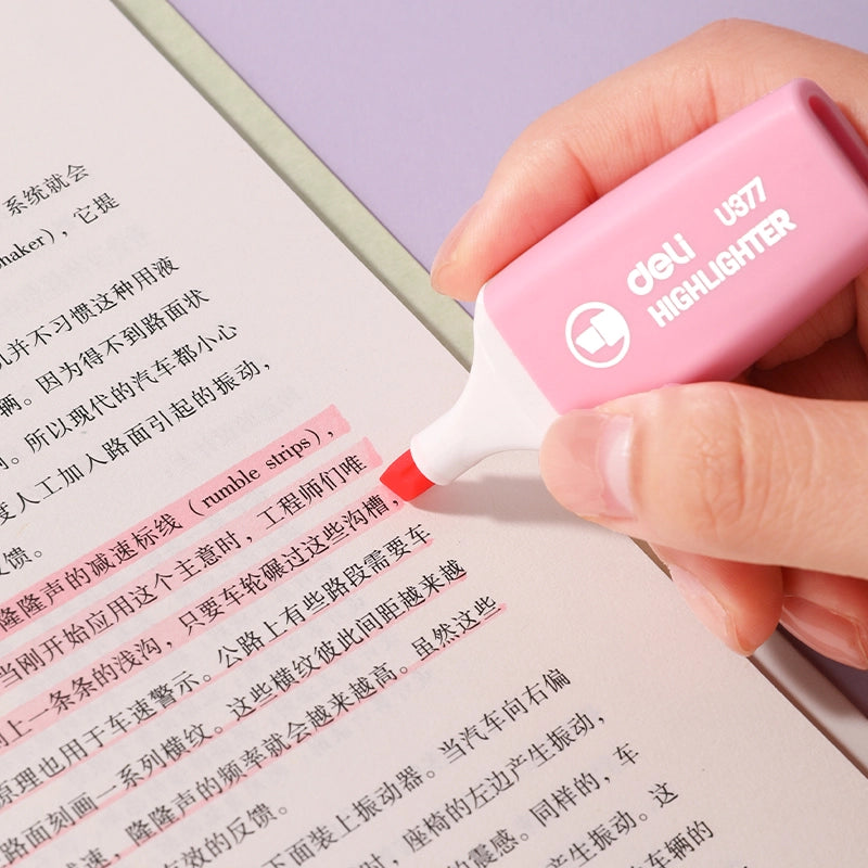 Compact highlighter set featuring six soft pastel shades ideal for subtle marking and color-coding. Each mini highlighter delivers smooth, vibrant coverage without bleeding through pages, making them perfect for students, professionals, and creative projects. The ergonomic design ensures comfortable handling during extended use. Deli's precision tip technology provides clean, controlled lines for detailed work. This versatile set works excellently on paper, documents, and notebooks. Lightweight and portable, these highlighters are convenient for study sessions, office work, or on-the-go organization.