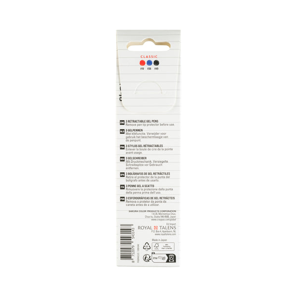 Sakura Gelly Roll Classic Retractable Gel Pens, 3-Pack Red-Blue-Black