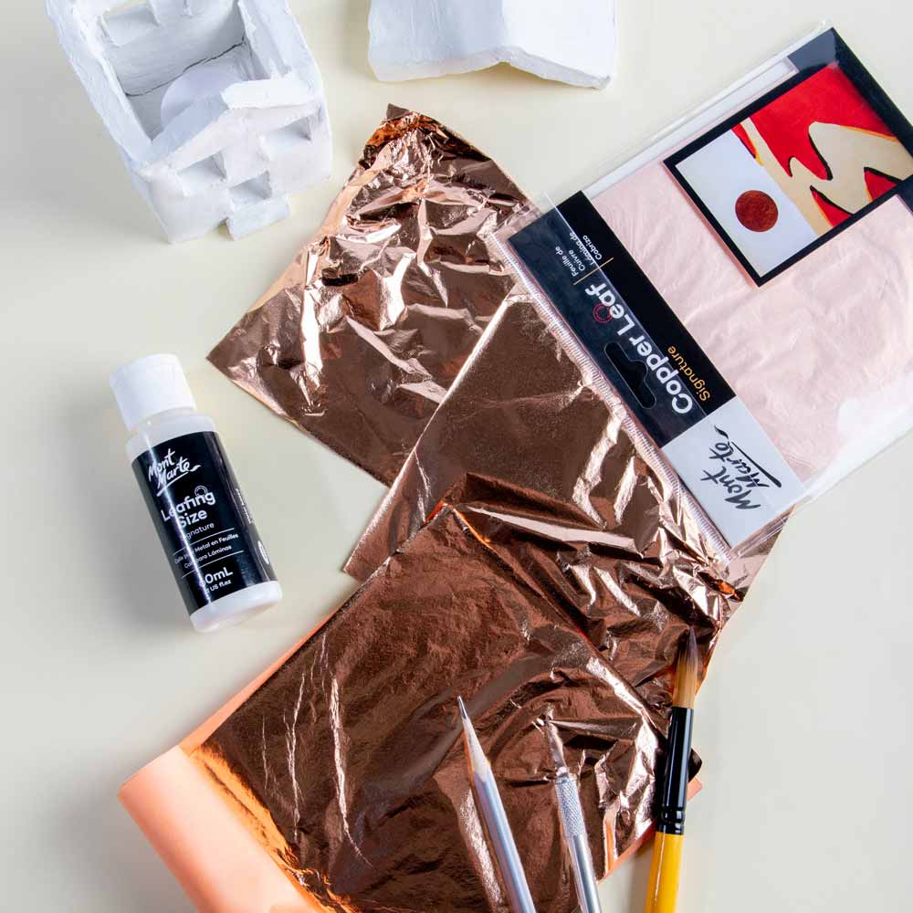 The age old process of metal leaf gilding can add a new dimension to the appearance of paintings, sculpture, leather goods, metal work, glass, picture frames and much more. The effects and outcomes achievable are limited only by your imagination. Have fun experimenting with the whole range of Mont Marte leaf products.