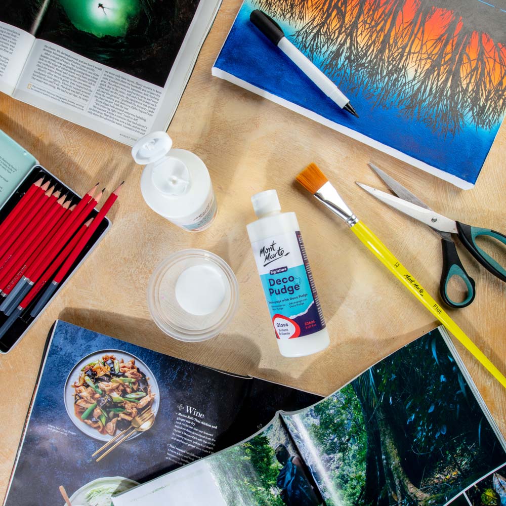 Mont Marte Deco Pudge Signature Gloss is a multi-purpose glue, sealer and varnish in one! It offers a hard, clear, gloss finish for scrapbooking, decoupage, fabric, wood and kids’ projects. Use it to seal acrylic paints, stains, paper, wood, fabrics and more. Plus, you can sand in between coats for an ultra-smooth finish on your artwork. Add a finishing touch to your arts and crafts while protecting them for years with Deco Pudge.