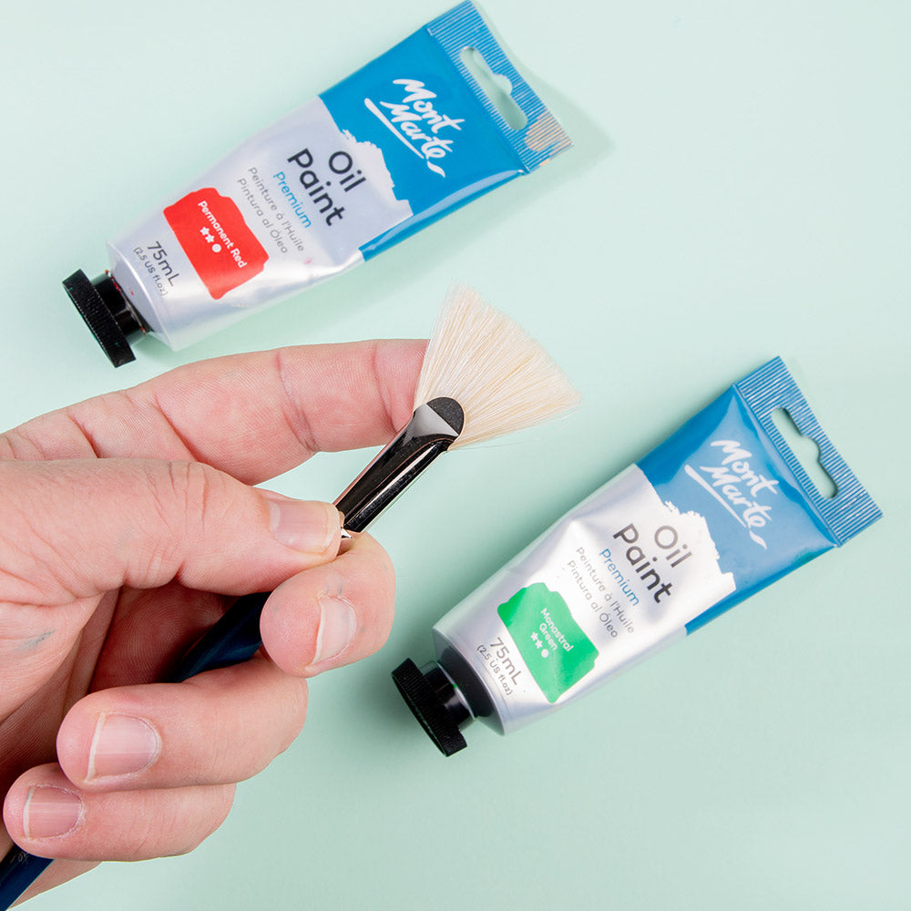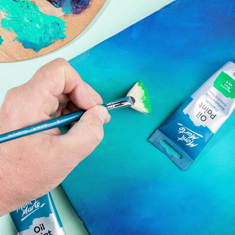 When you need to smooth and blend, reach for our Chungking fan brush. This brush is perfect for blending oil paints as well as creating different effects such as grass, foliage and clouds.