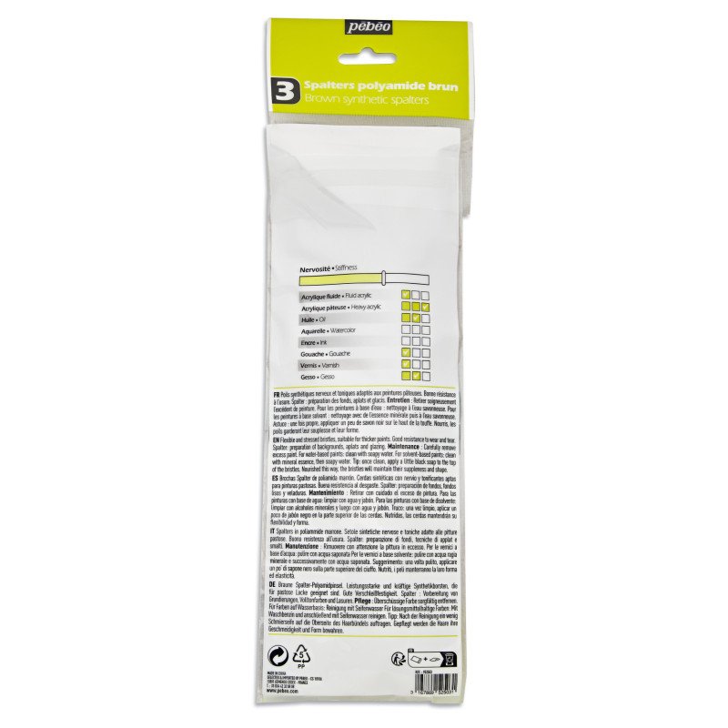 Pébéo brown polyamide spalter brushes are composed of a responsive synthetic fibre ideal for thicker paints. Good resistance to wear and tear.