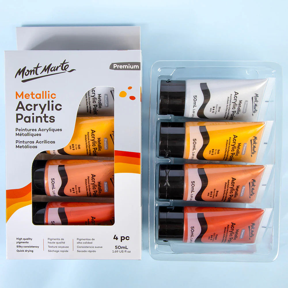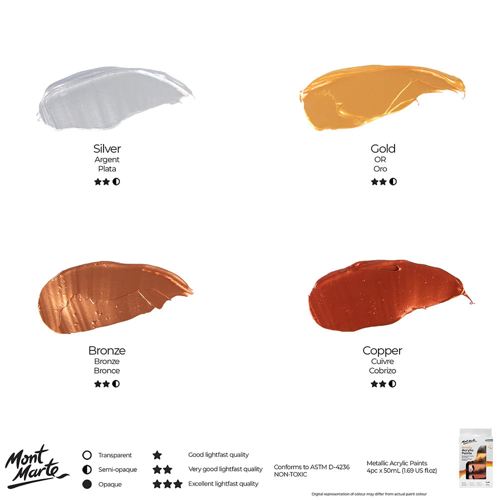 Mont Marte-Acrylic Paint Metallic 4X50ml Set-PMHS0012