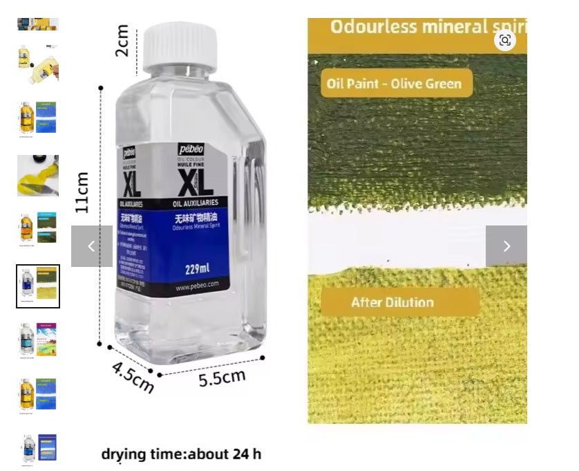 PEBEO Odourless Mineral Spirit (229ml) is a high-quality solvent designed for delicate cleaning and thinning tasks in art and restoration projects. Its low odor formula ensures a safer and more comfortable working environment without compromising effectiveness. Ideal for artists and professionals, it efficiently dissolves oil-based paints and cleans brushes, tools, and surfaces while preserving the integrity of your work. This 229ml bottle offers a convenient size for precision use and easy storage.