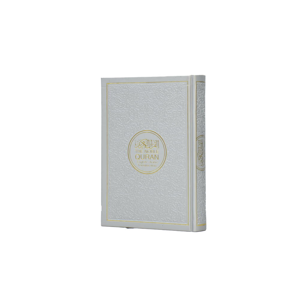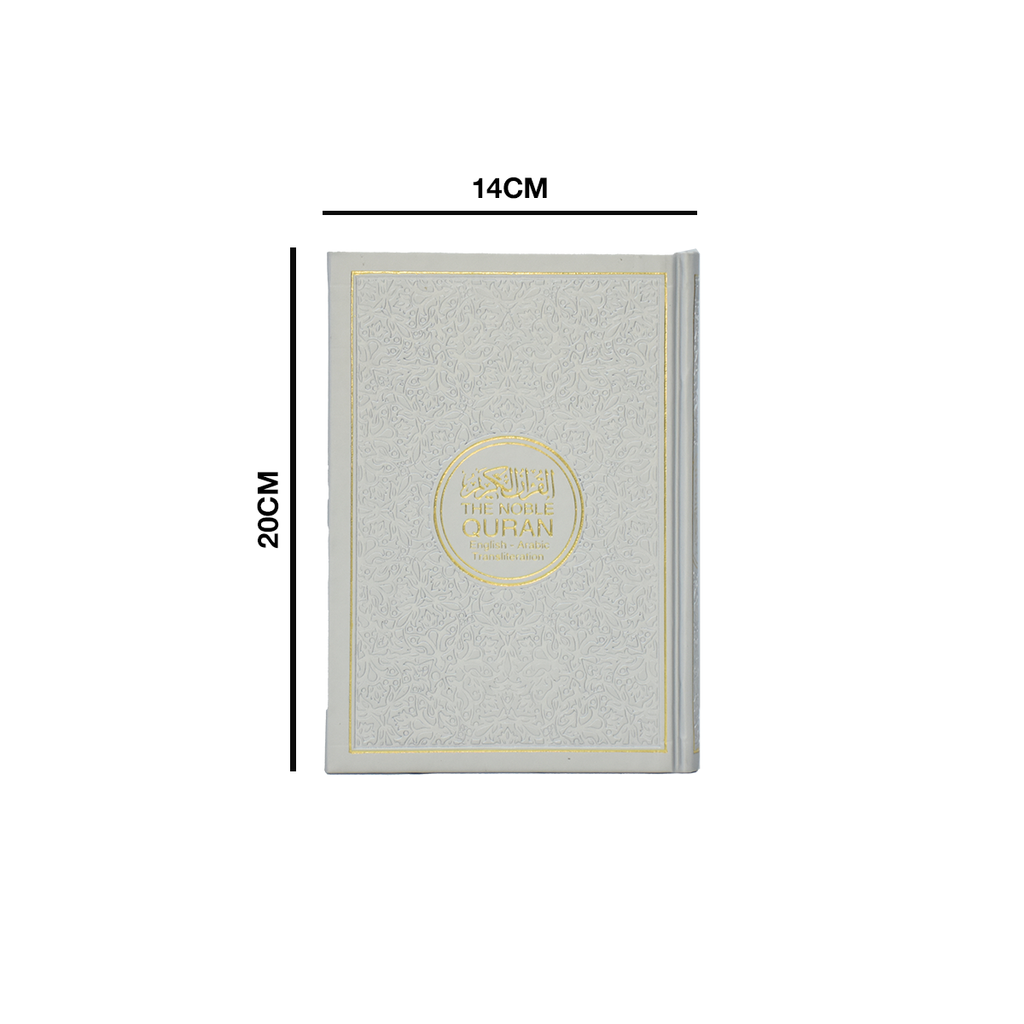 مصحف 14×20 عربي انجليزي لاتيني شاموا غلاف بيو فضي