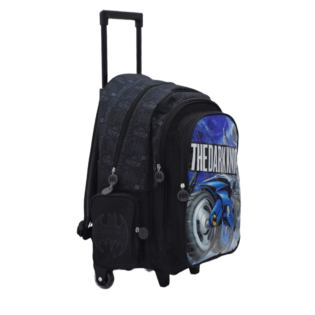This 18-inch Batman trolley bag combines practical size with iconic design, ideal for young travelers and fans alike. Its sturdy wheels and extendable handle ensure easy mobility, while the spacious interior offers ample room for essentials. Crafted for durability, this trolley bag makes travel convenient and stylish for everyday use or trips.