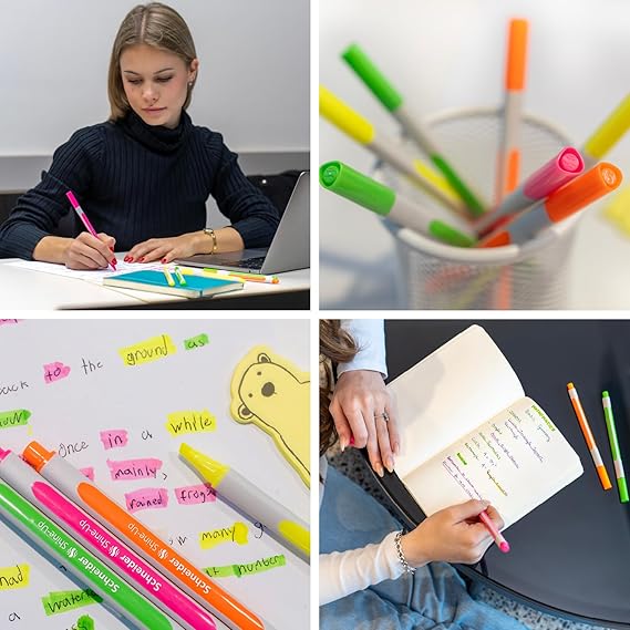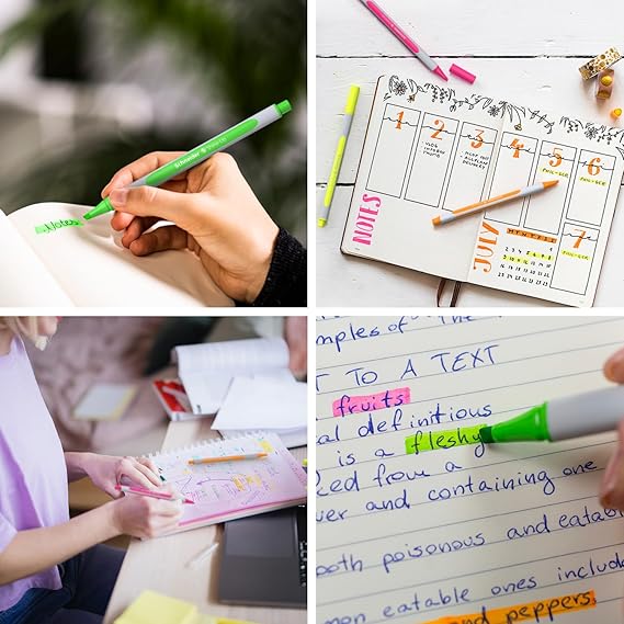 • Highlighter for marking and studying – thanks to the two line thicknesses (1 + 4 mm chisel tip) and the universal glossy ink for normal paper, copier and fax machines, the marker is versatile. The cap is reversible