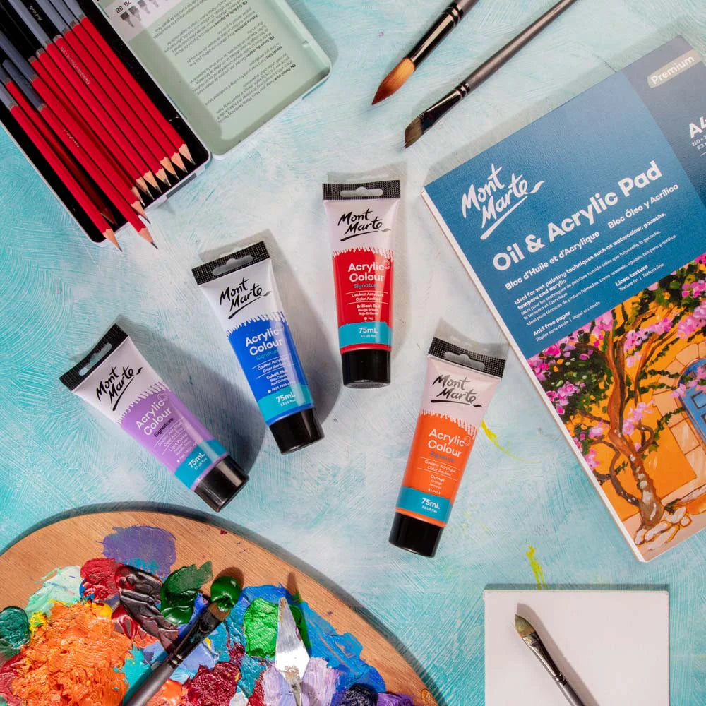 Our Acrylic Colours are a great go-to for your art and craft projects. This paint features a smooth and creamy texture and can be used on most surfaces including canvas, cardboard and leather.