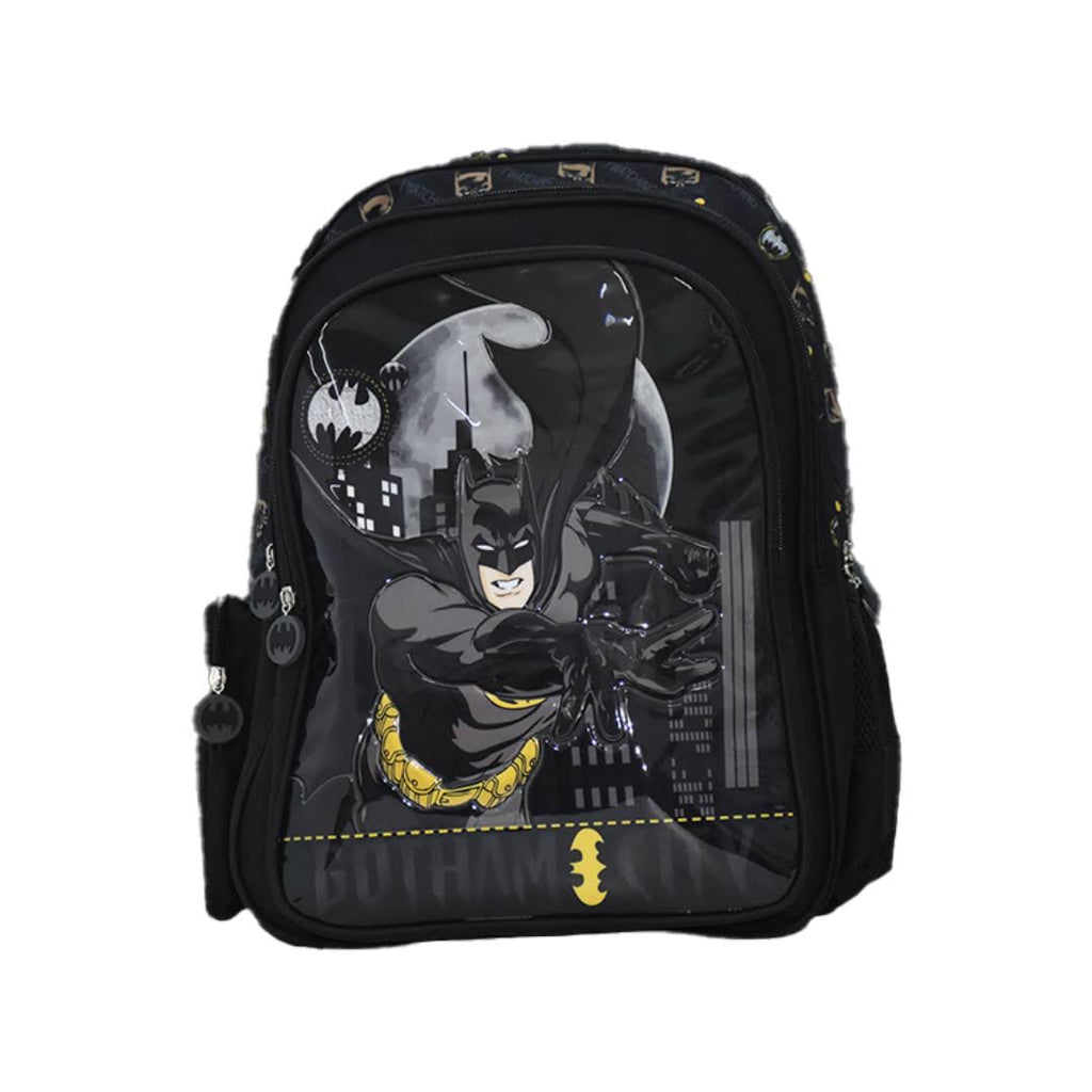 This 18-inch Batman backpack combines iconic superhero style with practical design. Crafted for durability, it offers ample space for books, gadgets, and daily essentials, making it ideal for school or casual use. The adjustable straps ensure comfortable wear, while the bold Batman emblem adds a distinctive touch for fans. Perfect for those seeking both functionality and a statement accessory.