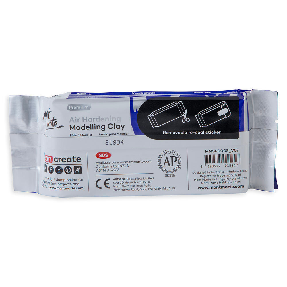 Mont Marte Air Hardening Clay is the perfect choice for professional modellers, artists and students alike. This heavy bodied clay is pliable after kneading, and because it is slow drying you can take your time forming it into your desired design.